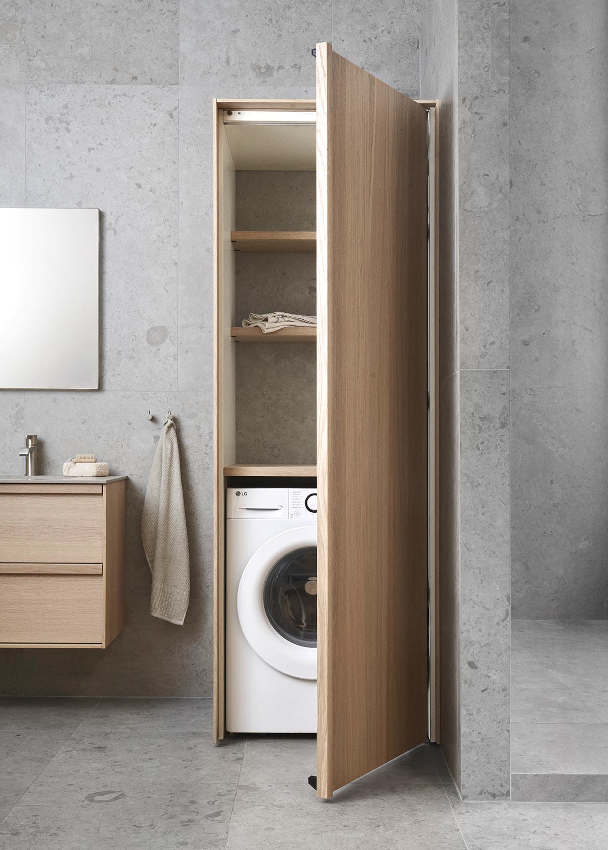 Smarta lösningar med pocketdoors för tvättstugan.