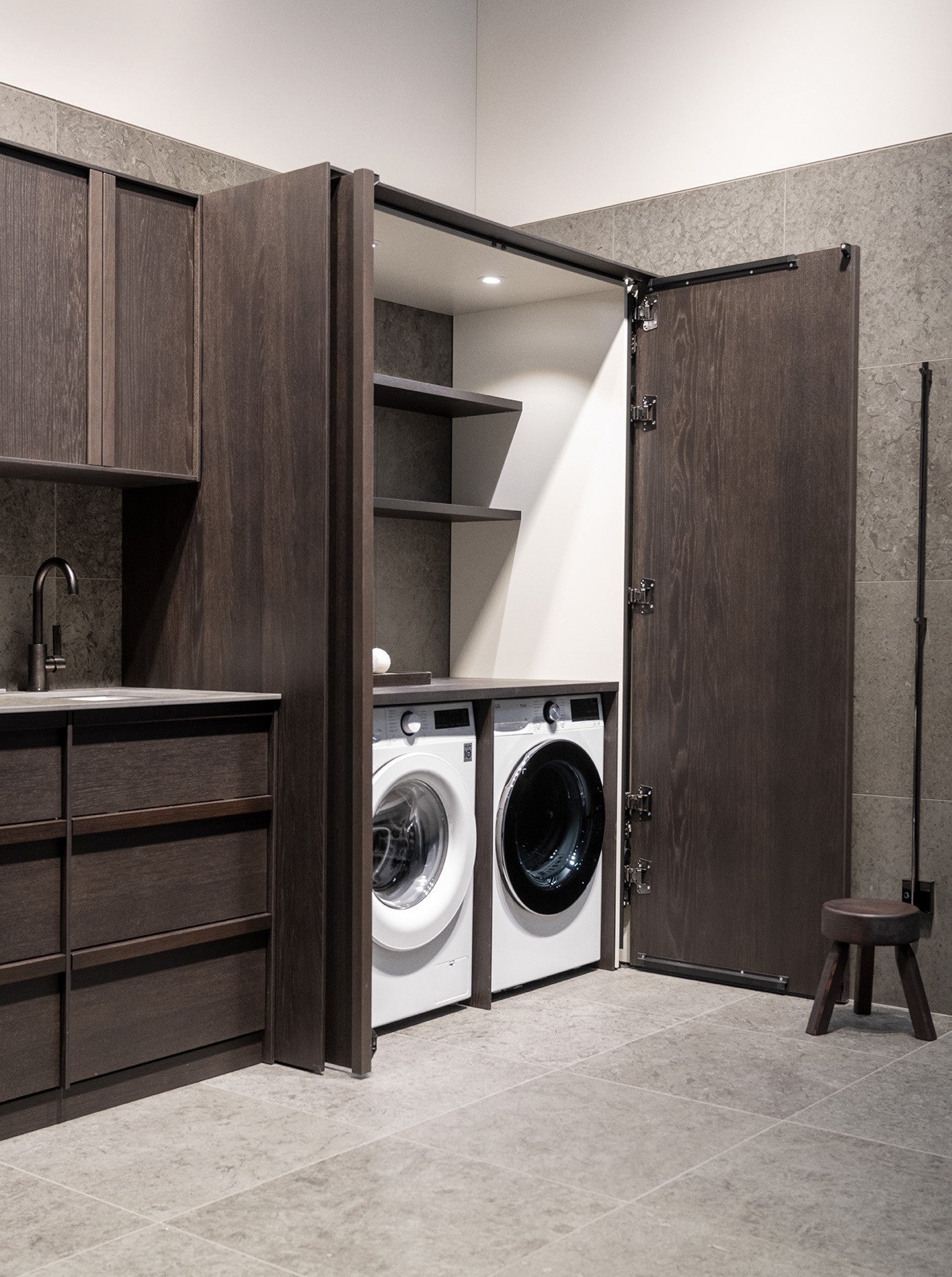 Den optimala tvättstugelösningen med maximal förvaring och funktion för dig som vill dölja maskiner och tvätt på ett sofistikerat sätt. Dubbla maskiner, eller kombinera tvättmaskin med UC60 för mer förvaring.